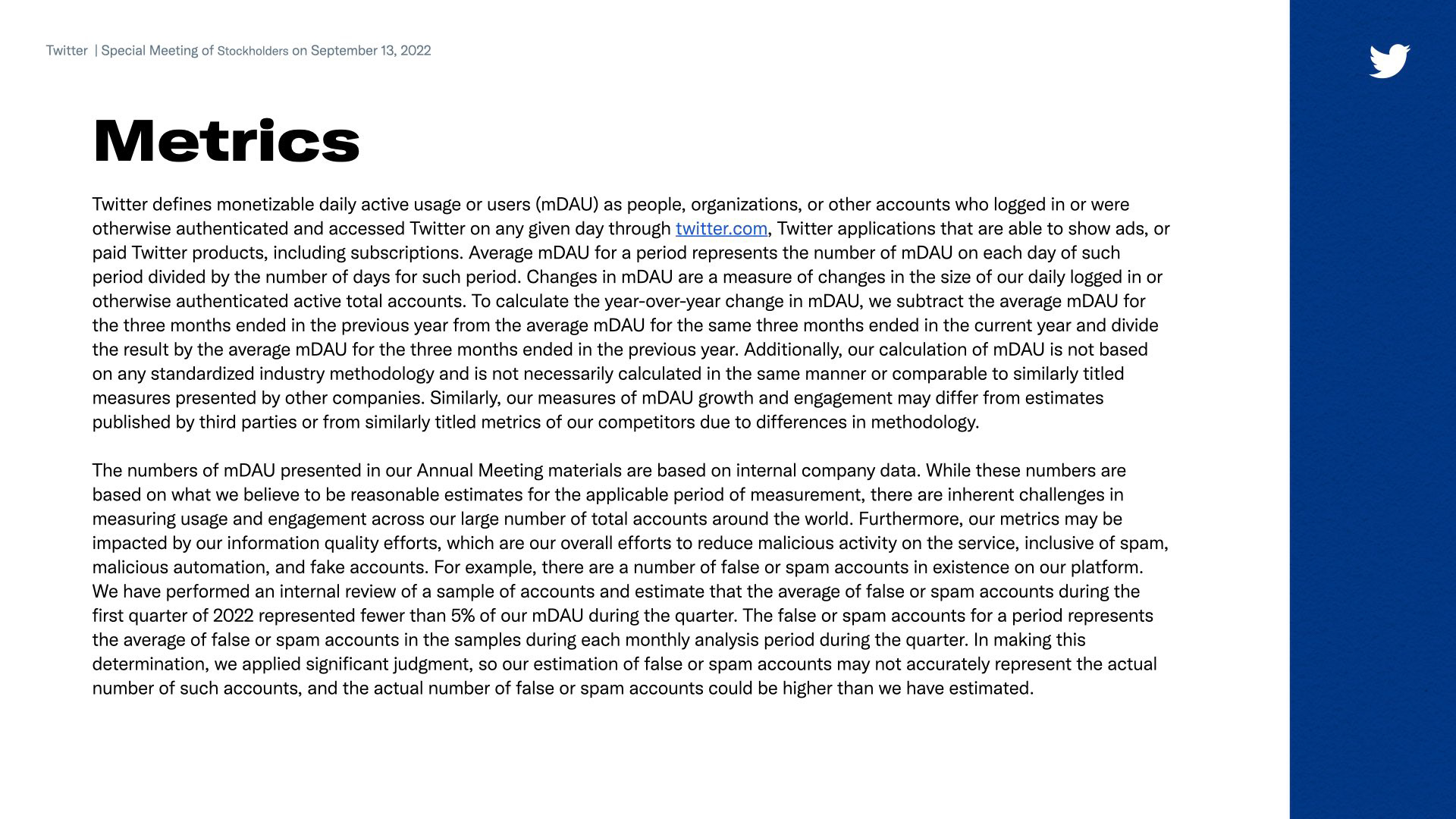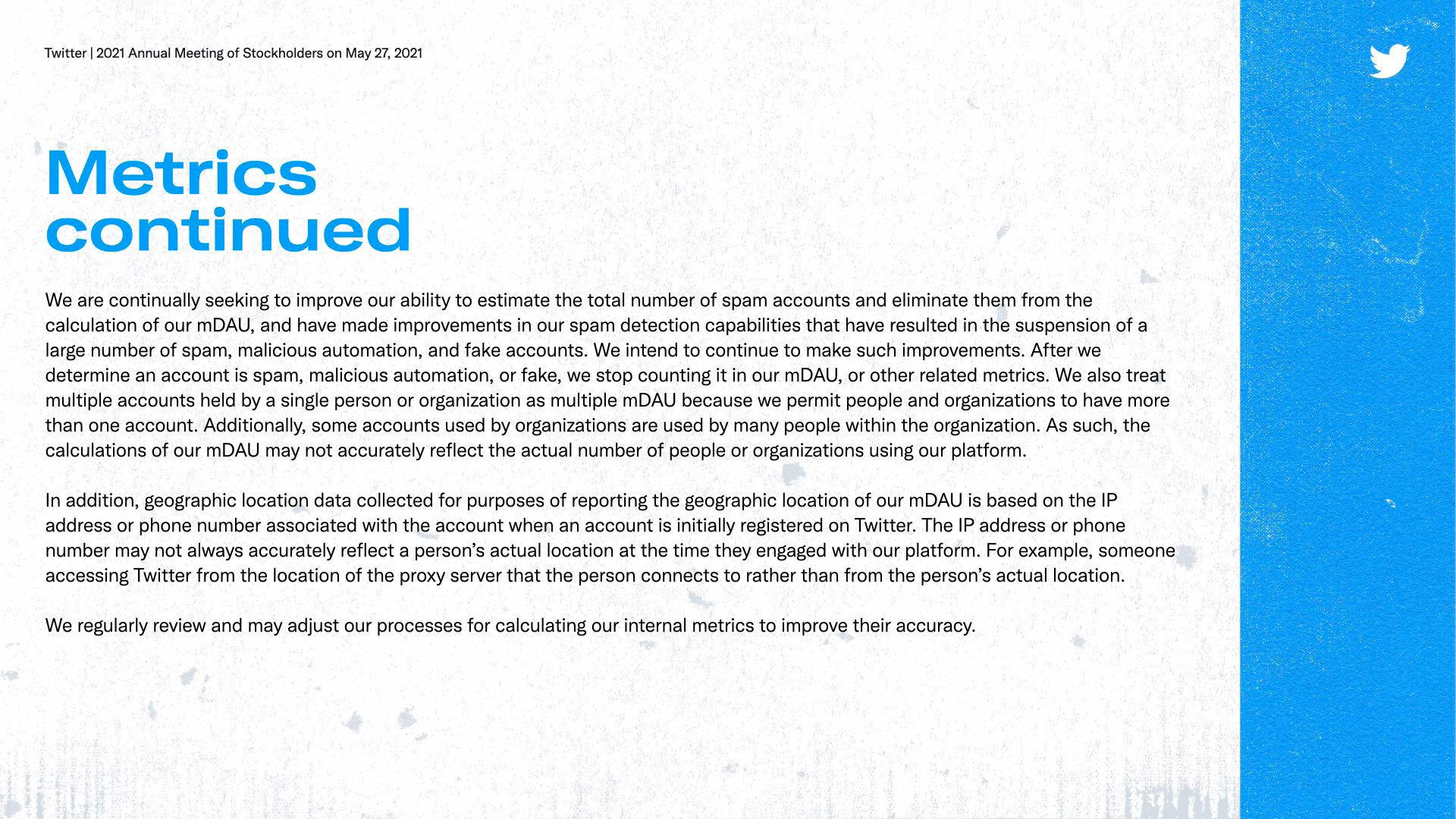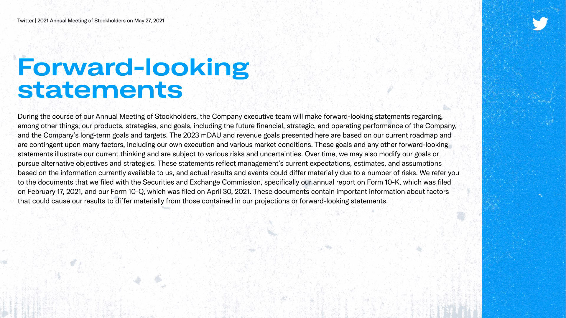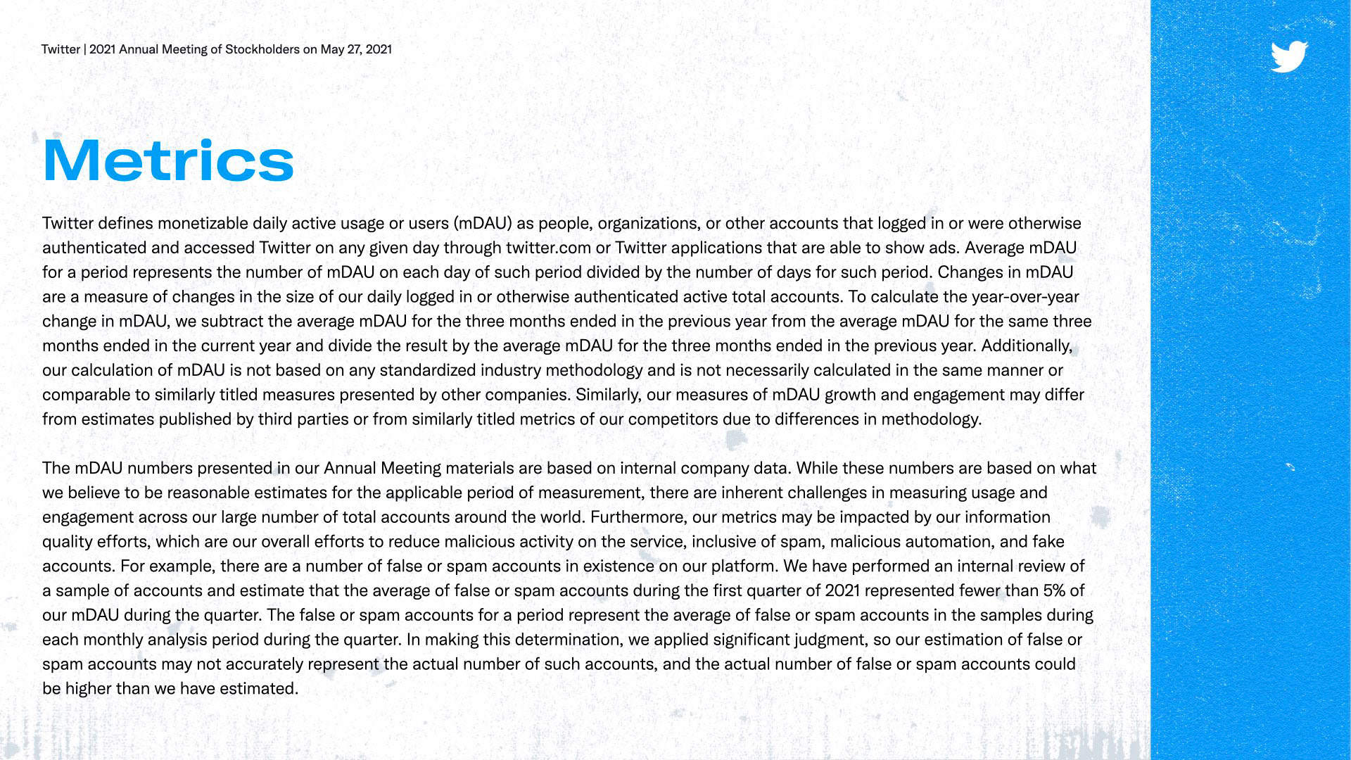TWITTER 2021 - ANNUAL MEETING OF STOCKHOLDERS